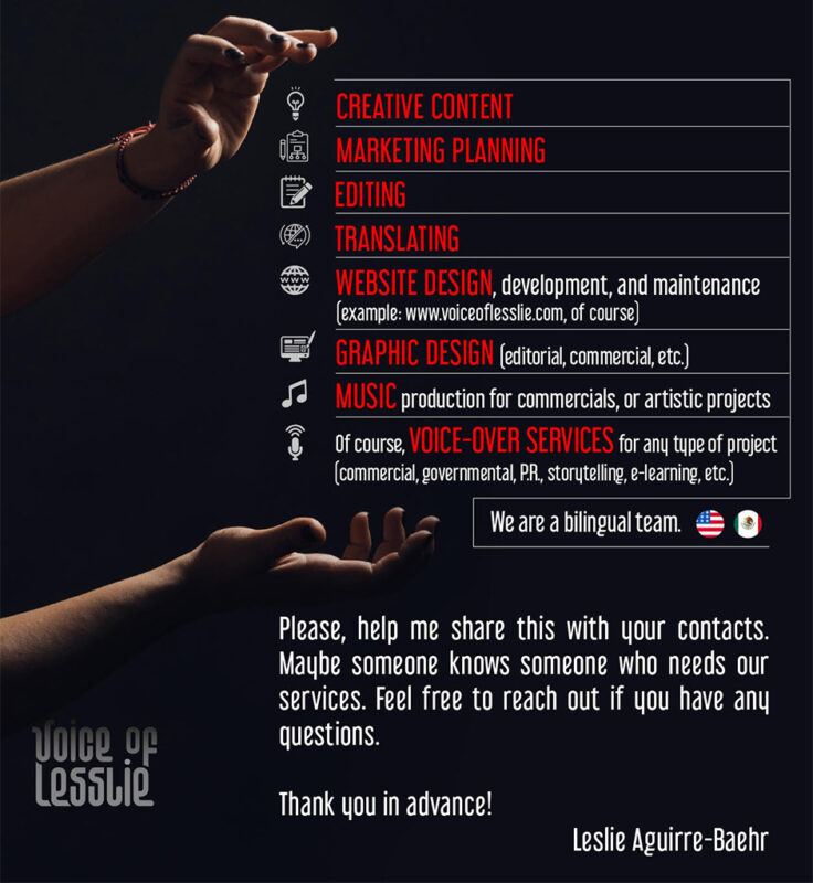 05 Dic Blog Escribir una canción / Contar un cuento / Editar, traducir y reportear Posted by Leslie Aguirre 01/03/2024 Hola a todos,Hoy sentí una fuerte necesidad de sentarme a acomodar mi persona en este post... La verdad es que cada proceso creativo qu... Continue reading